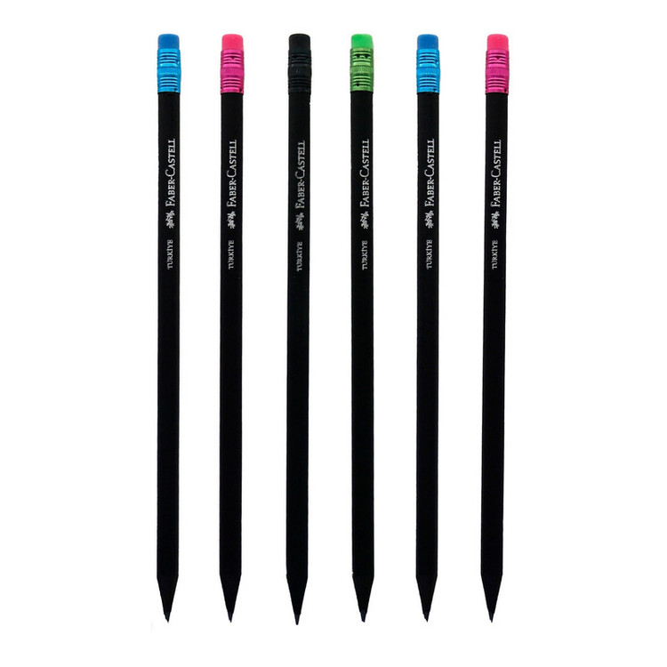 مداد مشکی فابر کاستل مدل پاک کن دار کد 006 بسته 6 عددی