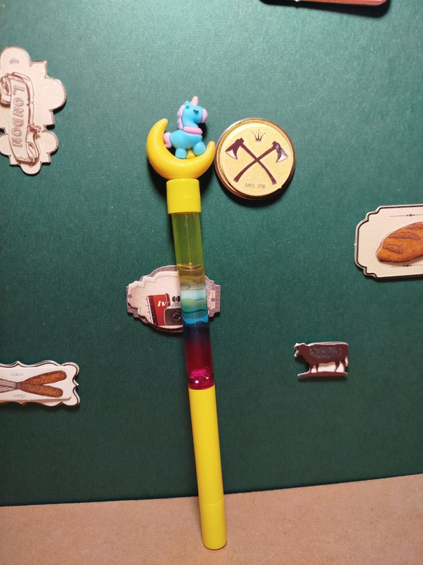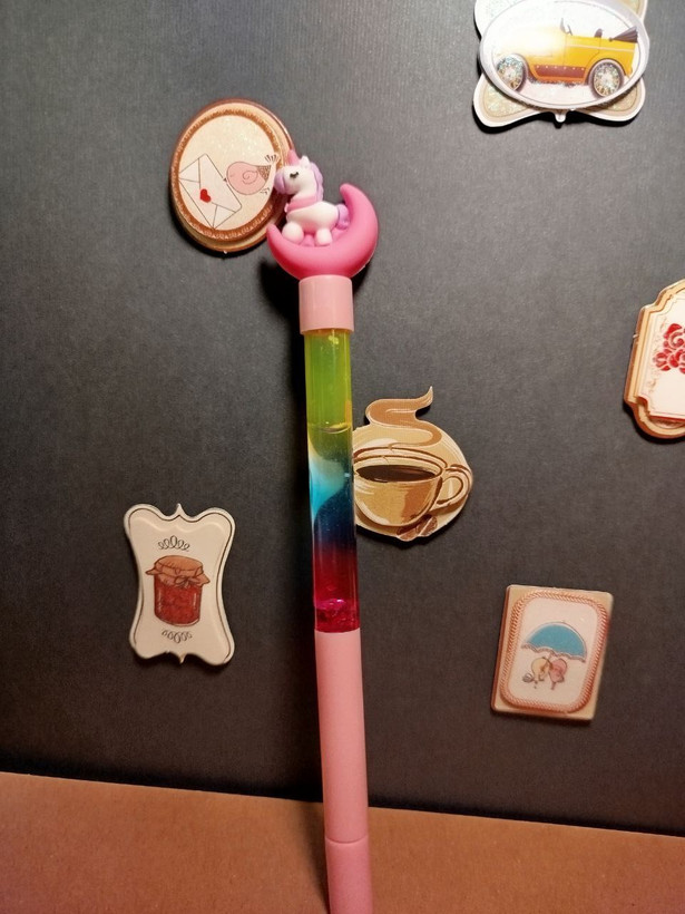 به خاطر اینکه هم محفظه ای آکواریومی با زر های داخل آن و هم یک تک شاخ سیلیکونی در بالای خودکار اون رو به یکی از خاص ترین و فانتزی ترین حودکارها تبدیل کرده است.