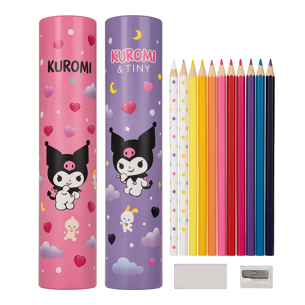 مداد رنگی ۱۰ رنگ لولهای Kuromi به همراه مداد، پاککن و تراش